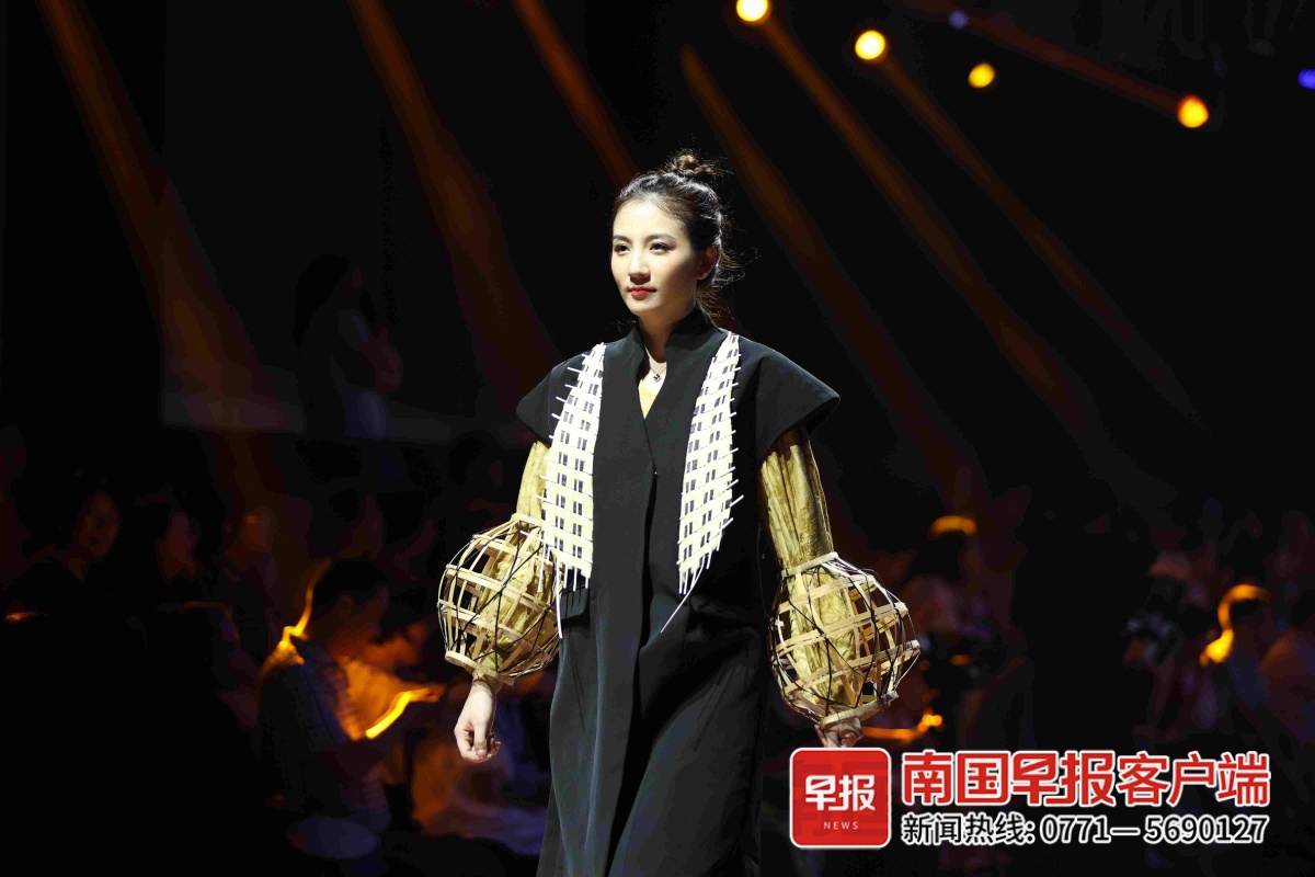 ▲部分高校设计的时尚服装使用了少数民族的日常生活用品作为装饰。记者 邹财麟 摄