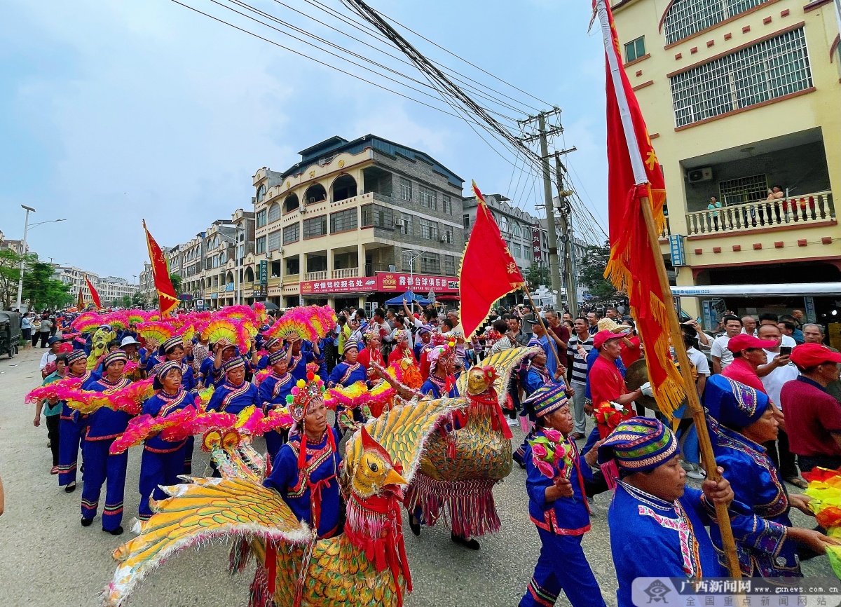 场内热闹非凡,场外亮点纷呈,观众们踏歌起舞,以歌传情、以舞会友,共同祝愿新的一年里风调雨顺、五谷丰登、国泰民安,彩凤、仙马、麒麟等非物质文化遗产项目表演走上街头,与游客近距离互动,让游客尽享壮族民俗风情,领略壮乡文化魅力。
