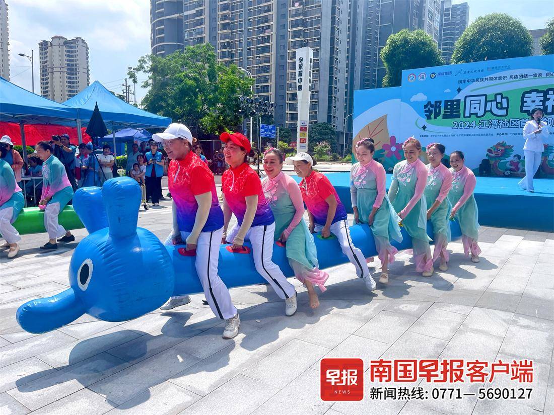 广场舞比赛、旱地龙舟竞技、派送百家米粥……6月1日、2日,南宁市邕宁区蒲庙镇江湾社区举办首届社区邻里生活节,多个小区的物管和业主代表共同表演文艺节目、参与趣味游戏,在欢歌笑语中增进邻里感情。