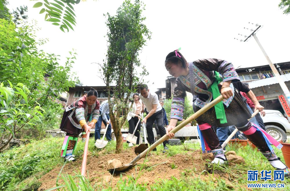 6月5日,在桂黔乌英苗寨,桂粤黔三地干部群众在种石榴树。