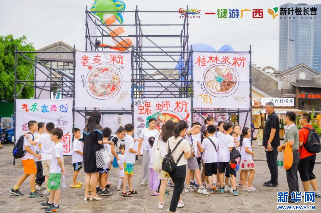 当晚,来自辽宁、北京、河北、广东等地的青少年组成的“广西米粉文化研学旅游体验团”,走进柳州窑埠古镇星光夜集开展研学。体验团的青少年成员们参与“就是这么柳”寻宝探秘游戏,学习柳州方言,体验传统米粉制作,寻找最具民族风的摊位,他们还收到当地小朋友送出的柳州特色“游学手信”。
