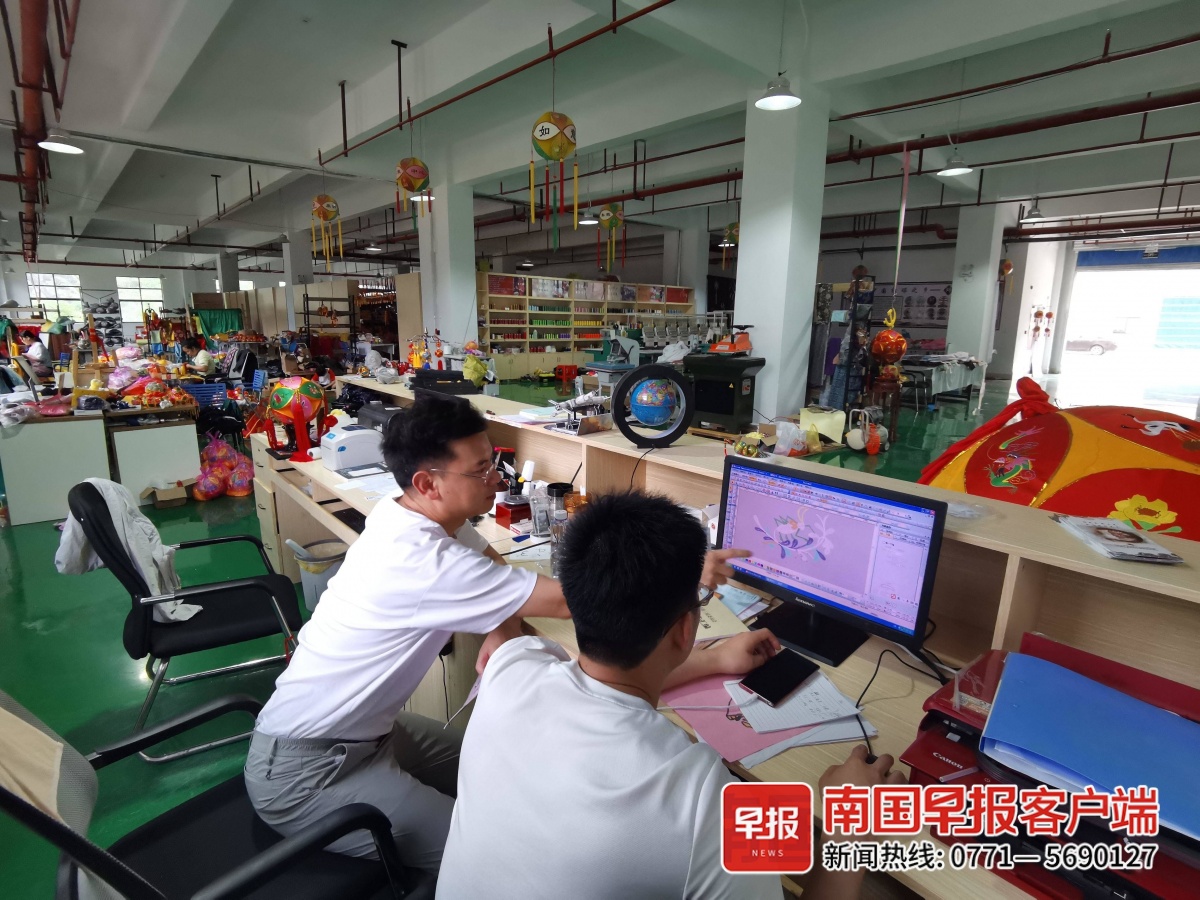 绣球设计师们正在设计纹样。受访者供图