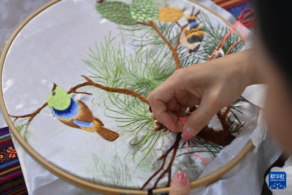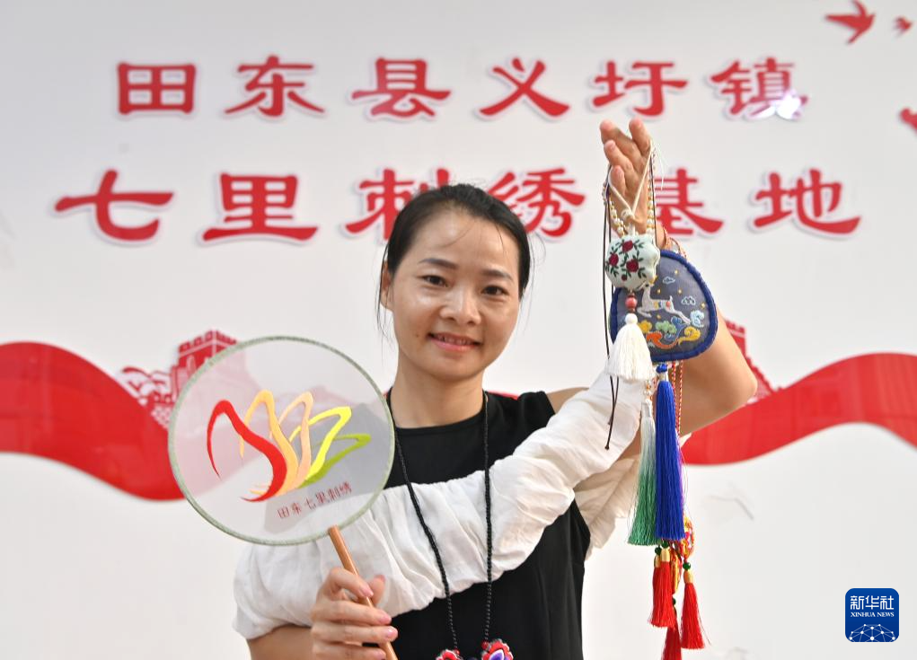 “我从小就跟着奶奶学刺绣,后来又跟着姑姑、阿姨学,在学习中不断创新,已经以七里刺绣为基础创作了12种工艺品。我要让七里刺绣走出大山,让越来越多的人接受;让七里刺绣走进学校,走近孩子,让阿奶的手艺代代相传。”广西百色市田东县义圩镇朔晚村村民凌漫丽说。
