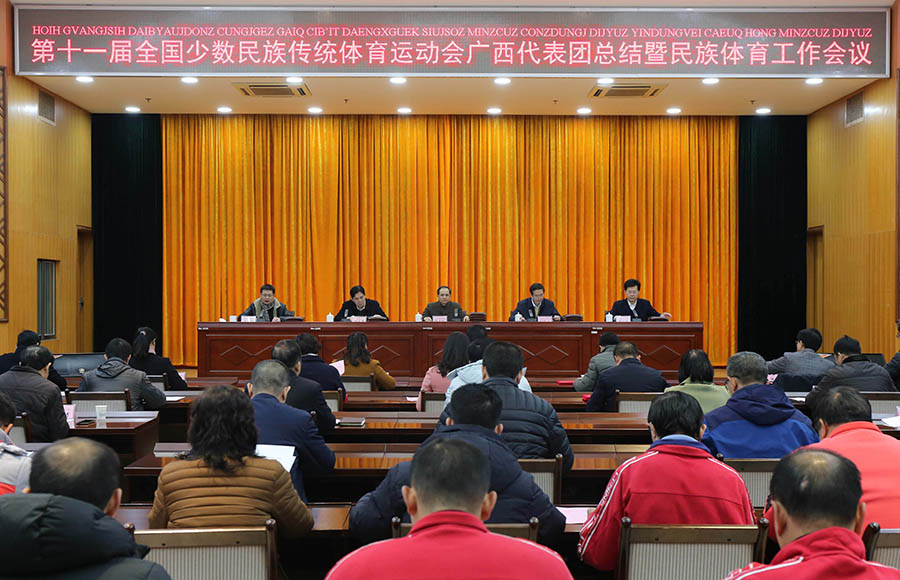 会议全面总结了广西代表团参加第十一届全国少数民族传统体育运动会的成绩及经验。会议指出,广西代表团在本届运动会上竞赛作风更加顽强、参加大型活动更加成功、宣传工作更加有力,通过实战检验了我区民族体育工作水平,通过比拼展示了我区民族团结进步工作成果。自治区党委、政府及各级领导高度重视,是广西代表团取得优异成绩的重要保证。广大运动员、教练员长期坚持训练备战及比赛时永不言败的拼搏精神,是广西代表团取得优异成绩的重要基础。团部工作人员精心组织、精确指导、精准实施,是广西代表团取得优异成绩的重要保障。河南省郑州市提供良好的比赛条件和对口接待单位的全力支持,是广西代表团取得优异成绩的重要助力。