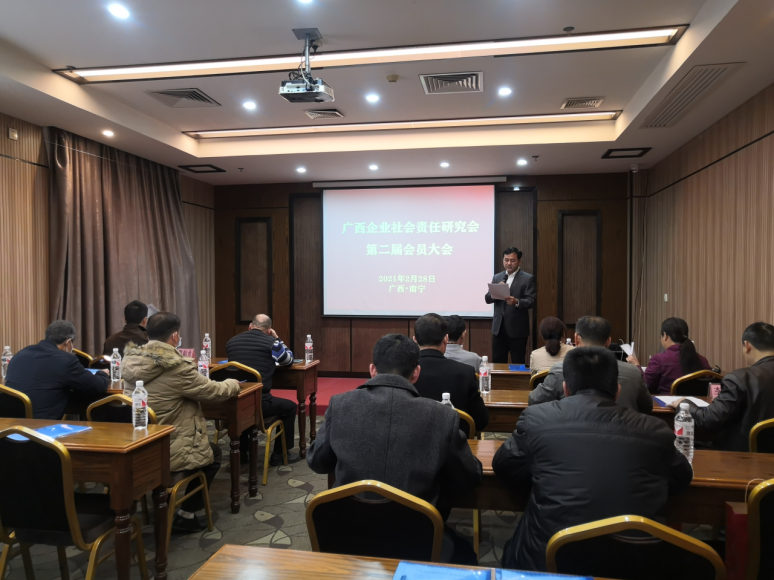 2月28日,广西企业社会责任研究会第二届第一次会员大会在南宁举行。经过与会人员无记名投票,黄绥彪连任第二届会长,覃朝勇等当选第二届副会长,李爱友连任第二届秘书长,伍 迁当选第二届监事长,黄军勇等5人当选第二届常务理事,曾艳华、潘红平、张骁鸾、张恒松、黄丽馨、杨钙仁、崔奎青、许成才、亢乃坚等20人当选第二届理事、监事。会上,广西企业社会责任研究会第二届理事班子集体表态,广西企业社会责任研究会将全力促进广西企业社会责任建设进入新发展阶段。