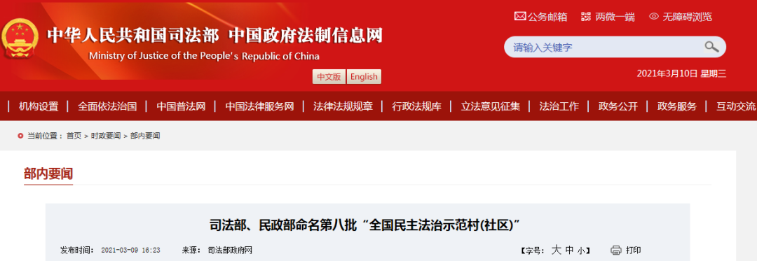 近日,司法部、民政部印发通知,决定命名1045个村(社区)为第八批“全国民主法治示范村(社区)“,广西30个村(社区)上榜。