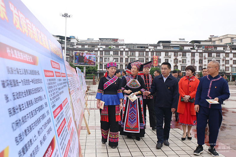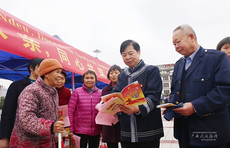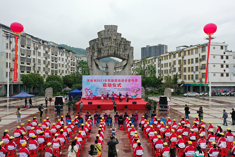 今年的河池市民族团结进步宣传月活动以“感党恩 跟党走 铸牢中华民族共同体意识“主题,启动仪式现场进行了精彩的民族团结文艺演出,民族团结板报展,设立了民族法律法规和民族政策现场咨询点,河池市有关部门的工作人员现场发放了相关的宣传资料,并提供民族政策法规咨询服务。