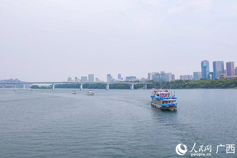 开幕式巡游船艇编队在柳江上航行。人民网 吴明江摄