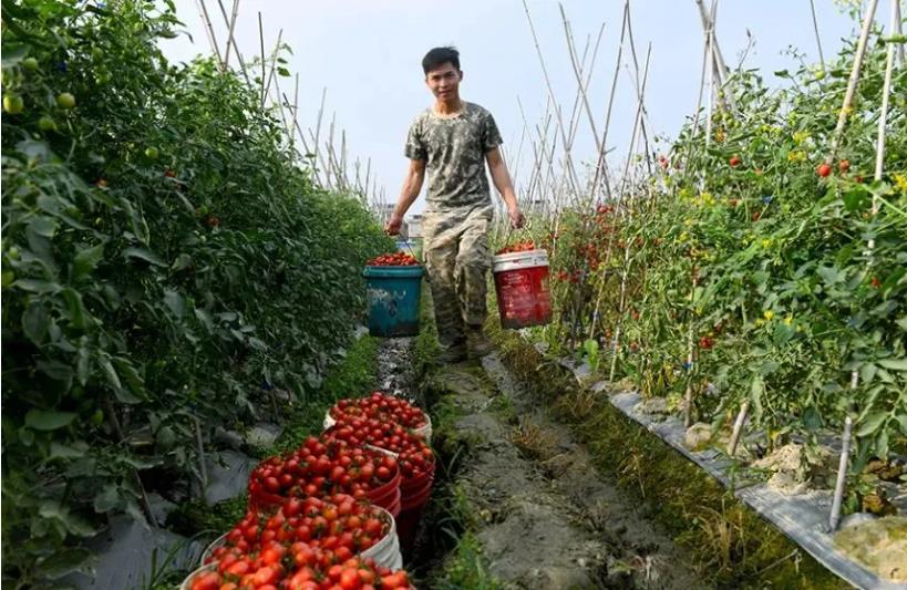 红彤彤的番茄挂满枝头,果蔬产销情况也红红火火。