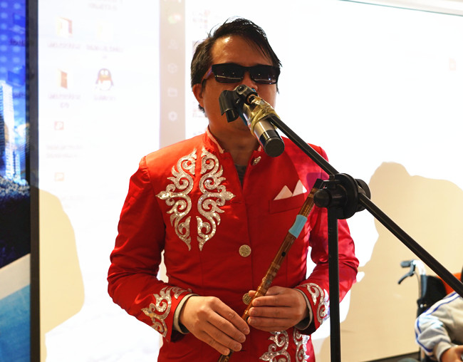 随后,演员唐文纵上台吉他弹唱歌曲《点亮未来》,盲人乐器演奏者阿宝笛子独奏歌曲《扬鞭催马运粮忙》,《慧画》残疾儿童上台现场作画,并赠送给与会嘉宾。