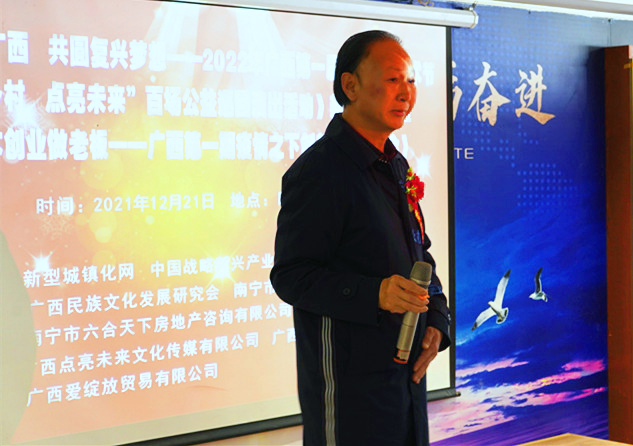 12月21日上午,由新型城镇化网、中国战略新兴产业网绿色发展频道、广西民族文化发展研究会、南宁市投资企业家联合会主办,广西点亮未来文化传媒有限公司、新领航地产德前分公司、广西象善文化传播有限公司承办,广西爱绽放贸易有限公司协办的《建设壮美广西 共圆复兴梦想——2022年广西第一届民族文化艺术节“振兴乡村 点亮未来“百场公益巡回演出活动》新闻发布会暨《零成本创业做老板——广西第一期疫情之下创新创业说明会》在南宁市印象江湾举行。