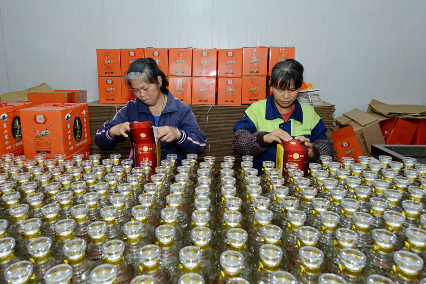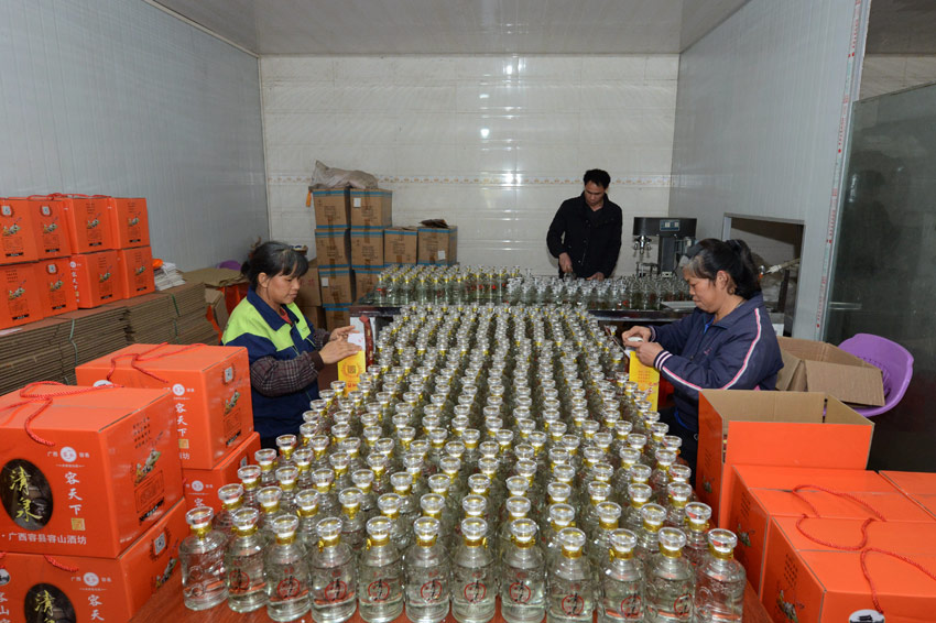 2月17日,走进容县六王镇龙头村,坐落在绿水青山之间的“容山酒坊“,飘荡着阵阵米酒的芳香。这是容县人大代表李林强2012年与4个村民筹资创办的酒坊,2015年注册了白酒商标“容水“,寄寓着容县人“容山容水容天下“的包容情怀。“返乡人员饮点家乡米酒,商议家乡发展事宜,近年已成为村里的新年俗。“龙头村党支部书记梁丕东说。