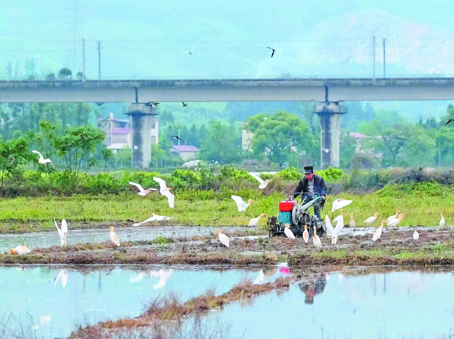 ②正值春耕备耕好时节,桂林市郊区农民驾驶农机翻耕水田。刘 芳 黄捷文 摄