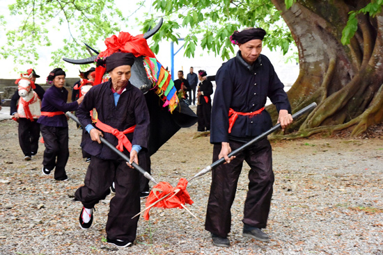 以文化振兴为魂,乡风文明气象新。坝盆村党(总)支部积极发挥党的农村基层组织在乡村文化发展中的领导作用,通过党员积分制、爱心超市积分管理等形式,有效调动村民参与乡风文明建设的积极性和主动性,引导群众自觉抵制腐朽落后文化侵蚀,推进移风易俗,弘扬时代新风,铸牢中华民族共同体意识,讲好“西林故事“。大力传承发展优秀农耕文化,深入挖掘传统村落文化、传统民俗文化,每年由坝盆村举办的“龙崖外“系列民俗活动,在2007年被列入自治区非物质文化保护遗产目录,在保护、传承和发展文化的同时,进一步加强桂滇两省(区)周边县的交流合作,促进民族村寨文化振兴。