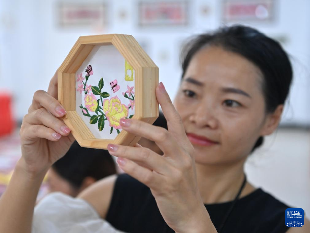 凌漫丽在田东县义圩镇七里刺绣基地查看绣品完成情况(8月20日摄)。 “我从小就跟着奶奶学刺绣,后来又跟着姑姑、阿姨学,在学习中不断创新,已经以七里刺绣为基础创作了12种工艺品。我要让七里刺绣走出大山,让越来越多的人接受;让七里刺绣走进学校,走近孩子,让阿奶的手艺代代相传。”广西百色市...