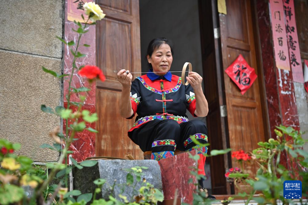 梁秀群在百色市田阳区巴别乡三坡村自家门前将竹篾定型(8月21日摄)。 72岁的广西百色市田阳区巴别乡三坡村村民梁秀群是广西壮族自治区级麦秆花篮编织技艺非物质文化遗产传承人。梁秀群12岁开始跟着邻居学习花篮编织技艺,心灵手巧的她很快就熟练地掌握了全套麦秆花篮编织技艺。1972年,梁秀群被当时的田阳县外贸局招...