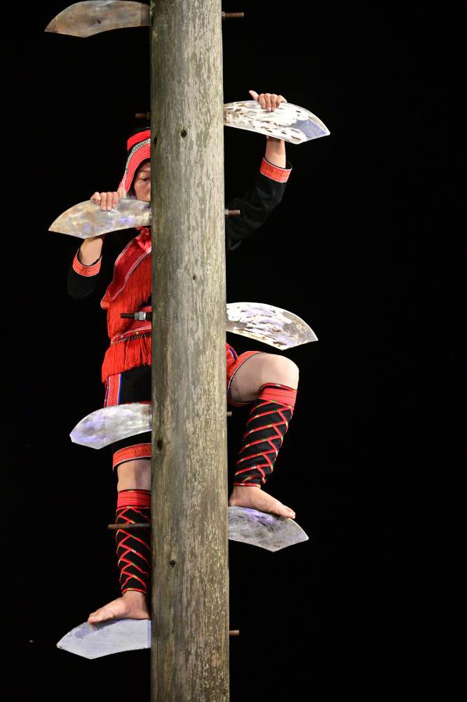 摘要提示:瑶族是民风较为强悍的民族,他们在祭祀、祈福、驱邪的仪式中,往往要进行一系列的绝技神功,以显示所向无敌的气概。8月28日晚,广西河池市南丹县歌娅思谷景区,白裤瑶艺人东荣上演瑶族绝技“上刀山下火海”。瑶族是民风较为强悍的民族,他们在祭祀、祈福、驱邪的仪式中,往往要进...