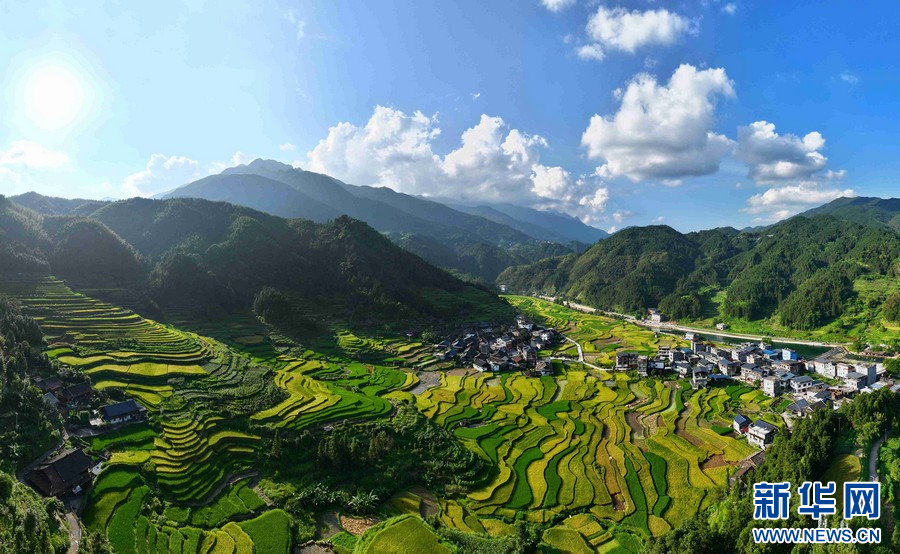 时下,广西柳州市融水苗族自治县香粉乡雨卜村水稻陆续成熟,丰收在望,黄绿相间的田园美丽如画。 今年以来,当地大力推广优质高产新品种和科学施肥,同时加大抗旱保苗力度,有效减轻灾害损失,确保了食粮丰收。(龙涛)...