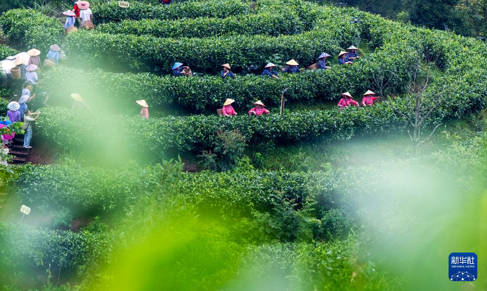2024年7月28日,广西梧州岑溪市南渡镇井河村百福山有机生态茶园,茶农忙着采收夏茶,供应市场。近年来,南渡镇依托独特的地理位置和气候条件,以“党支部+合作社+茶农”模式大力发展茶产业,打造成了一井一河一茶园特色茶旅文创、休闲农业示范体验基地,通过茶旅融合、茶产融合延伸产业链,有效带动广...
