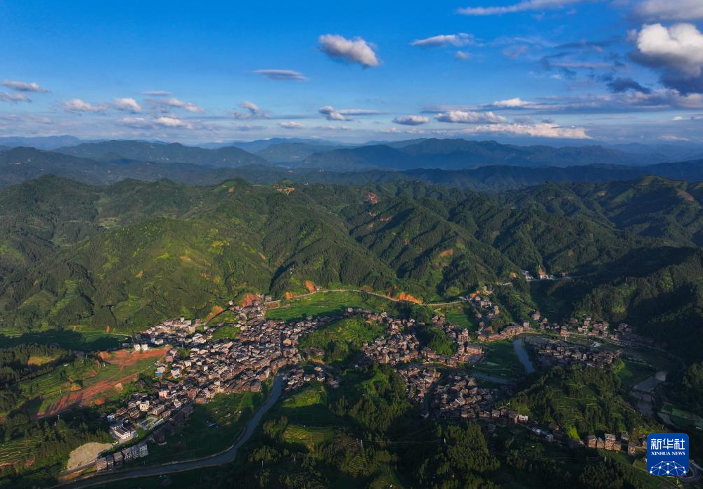 这是广西柳州市三江侗族自治县林溪镇平岩村全貌(无人机照片,7月7日摄)。 广西柳州市三江侗族自治县林溪镇平岩村位于桂北山区,有上千年的建寨历史,全村共有900多户3000多人口。这里的风雨桥、吊脚楼、鼓楼等侗族建筑风貌保存完好,历史名桥程阳永济桥已有上百年历史。平岩村侗歌、芦笙、琵琶等少数民族文化历史悠...