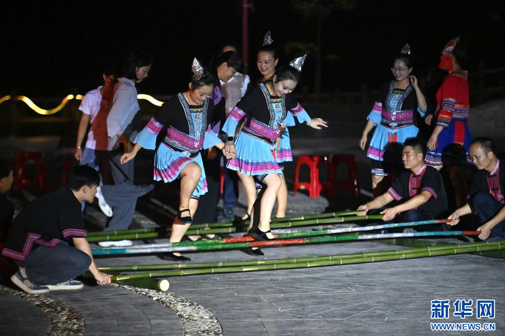 9月5日,在梧州市苍梧县六堡镇山坪村同心广场,各族干部群众在篝火晚会上跳竹竿舞。 9月5日,广西梧州市委统战部、市民宗委、市工商联等部门开展民族团结进步创建主题活动,当地各族干部群众通过抛绣球、板鞋竞速、篝火晚会等内容丰富、形式新颖的民俗系列文体活动,促进各民族交往交流交融。9月...