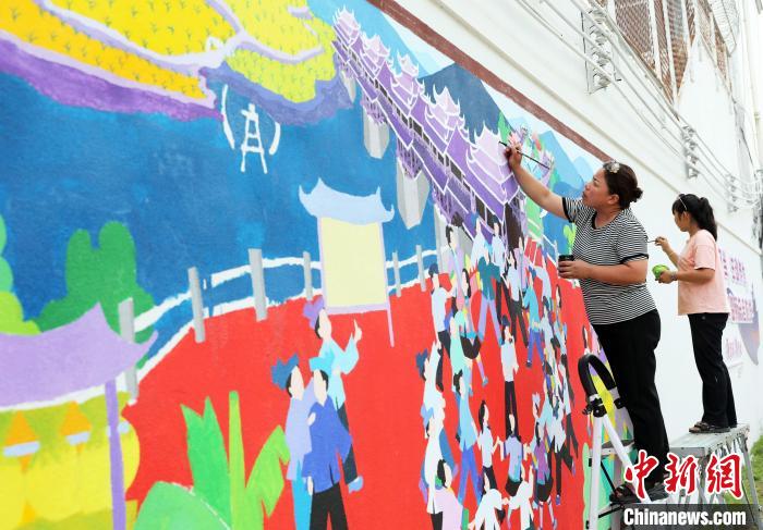 图为侗族农民画家正在外墙上绘制农民画。龚普康 摄图为侗族农民画家正在外墙上绘制农民画。龚普康 摄三江侗族农民画题材鲜明,反映乡村生活,宣传乡风文明。龚普康 摄图为侗族农民画家正在外墙上绘制农民画。龚普康 摄图为侗族农民画家正在外墙上绘制农民画。龚普康 摄三江侗族农民画题材鲜明,反映乡村生活,宣传...