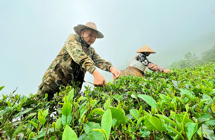 茶农在扶隆镇百亩尖峰茶场采茶。采茶。竹篓里新鲜的春茶。采茶。烟雨缭绕的扶隆镇百亩尖峰茶场。连日来,在广西防城港市防城区扶隆镇尖峰茶业的百亩茶山上,茶农冒着朦胧细雨,挎着竹篓穿梭在郁郁葱葱的茶场中,指尖娴熟地在青翠欲滴的茶叶间飞舞,一芽一芽地采摘“春天的馈赠”。胡大姐是清晨六点出发上茶山的。她...