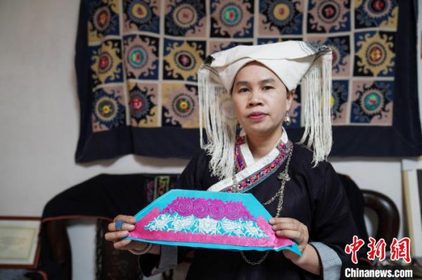摘要提示: 5月10日,黄碧瑜正在广西南宁市的家中制作背带,2019年被评为自治区非物质文化遗产隆林壮族背带代表性传承人。在她的针线中,寓意驱邪避祸的跳舞蜈蚣、多子多福的花楼等壮族刺绣图案,呈现在壮族民众背小孩的背带上。 制作隆林壮族背带时,图案先设计成剪纸,再在剪纸的基础上缝制...