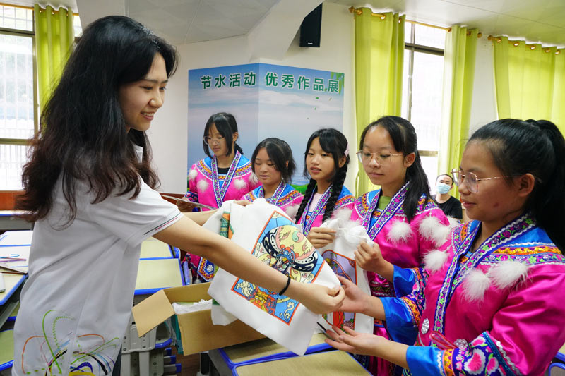 西工大研究生支教团的老师给融水民族中学的学生赠送文创产品柳州市非遗传承人讲刺绣的制作过程“我是苗族的学生,我喜欢我们苗族的刺绣,我长大以后打算把咱们苗族的文化传承下去。”融水苗族自治县民族中学的学生贾鲜艳说。6月19日,融水苗族自治县民族中学苗绣室10多名学生与远在千里之外的西北工业大学工程实践训...