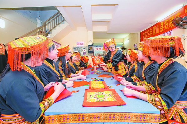 3月7日,蒙山县妇联在长坪瑶族乡民俗文化街瑶绣馆举行庆三八国际妇女节瑶绣活动,20多名女干部职工在瑶绣传承人的指导下练习刺绣技艺。记者 梁乾胜 通讯员 黄胜林 摄 3月7日,中建八局妇联和法援中心在南宁青运村项目部开展慰问活动,为一线女工友解决在权益维护、家庭教育等方面遇到的困难。记...